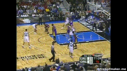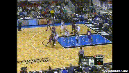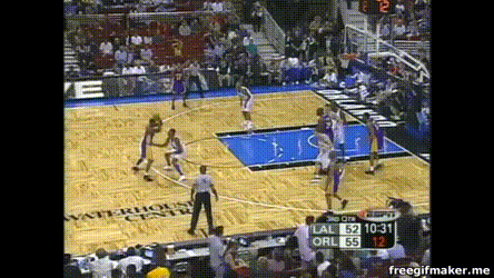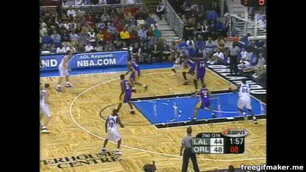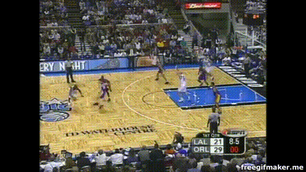 以及科比急速突破后的调整能力,招牌的平步落地后空中扭肩: