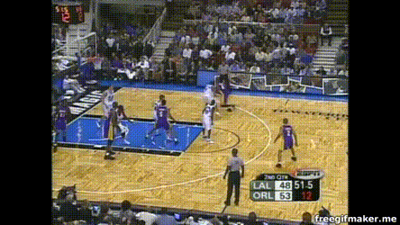 以及这一下:科比跟到位了,甚至预判到位提前伸手干扰了:但麦蒂还是靠着身高臂长投出去了。